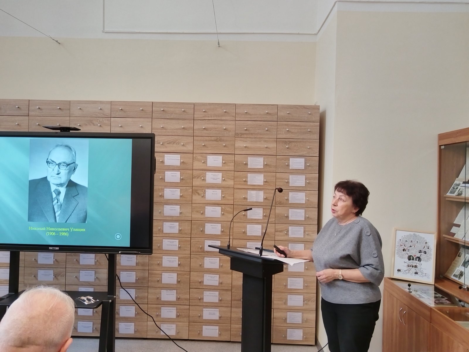 Перад прысутнымі з прывітальнай прамовай выступіла дырэктар БДАМЛМ А.А.Макарэнка. Т.І.Жук расказала пра калекцыю дакументаў М.М.Улашчыка ў Цэнтральнай навуковай бібліятэцы імя Якуба Коласа. Цяпер гэтая калекцыя з’яўляецца асноўнай. Д.С.Самахвалаў прадставіў дакументы, якія захоўваюцца ў фондах БДАМЛМ, звязаныя з М.М.Улашчыкам. Важную частку з іх складаюць эпісталярныя крыніцы. Крыніцазнаўцы М.Ф.Шумейка, В.Ф.Голубеў, А.Л.Кіштымаў нагадалі аб супрацоўніцтве М.М.Улашчыка з іншымі беларускімі вучонымі, дзеячамі літаратуры і мастацтва. Асаблівую ўвагу прыцягнула выступленне М.М.Купавы, які быў асабіста знаёмы з юбілярам, рабіў для яго экслібрыс.