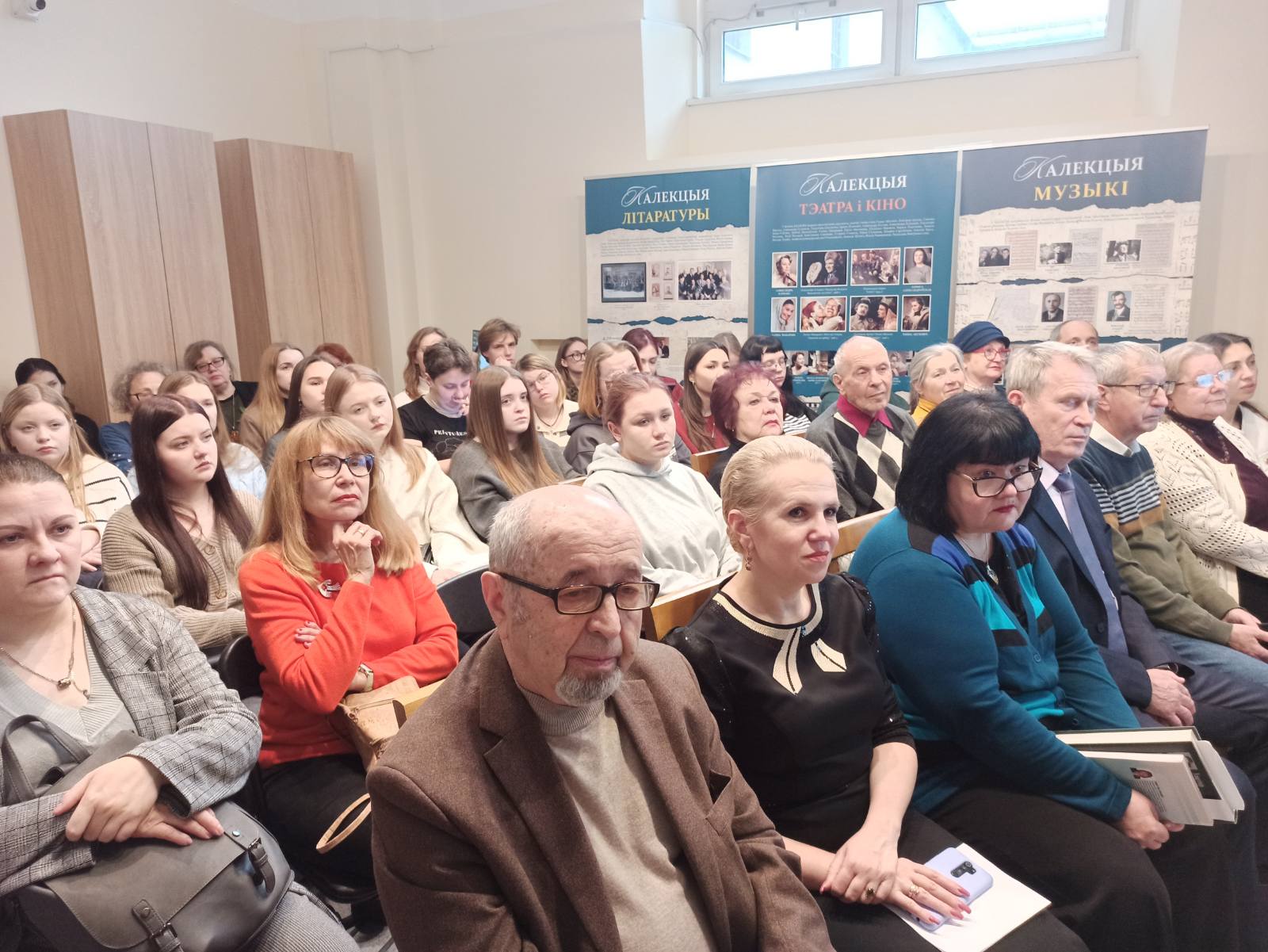 Куратор выставки ведущий архивист Н.А.Мизон познакомила присутствующих с экспонируемыми документами, обратила внимание на самые ценные из них и рассказала, как официальные документы (протоколы собраний, справки, письма в организации и учреждения, анкеты), регламентирующие и фиксирующие жизнь в обществе, контрастируют с творческими документами (рукописями стихов и романов, письмами к близким людям, изображениями В.Короткевича и его друзей, семейными фотографиями). Оба кластера документов в богатом количестве представлены в БГАМЛИ и помогают в исследовании жизненного и творческого пути писателя.