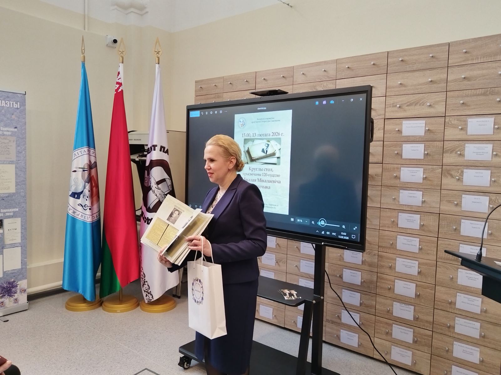 13 февраля 2026 года в Белорусском государственном архиве-музее литературы и искусства (далее – БГАМЛИ) прошёл круглый стол, посвященный 120-летию белорусского археографа Николая Николаевича Улащика. Н.Н.Улащик был ученым широкого профиля – историком, библиографом, культурологом, краеведом, однако работа с архивами, поиск белорусских архивных материалов всегда оставались его приоритетом. В круглом столе приняли участие ведущий научный сотрудник БГАМЛИ Д.С.Самохвалов, учёные-источниковеды М.Ф.Шумейко, В.Ф.Голубев, А.Л.Киштымов, библиограф Т.И.Жук, художник-график Н.Н.Купава.