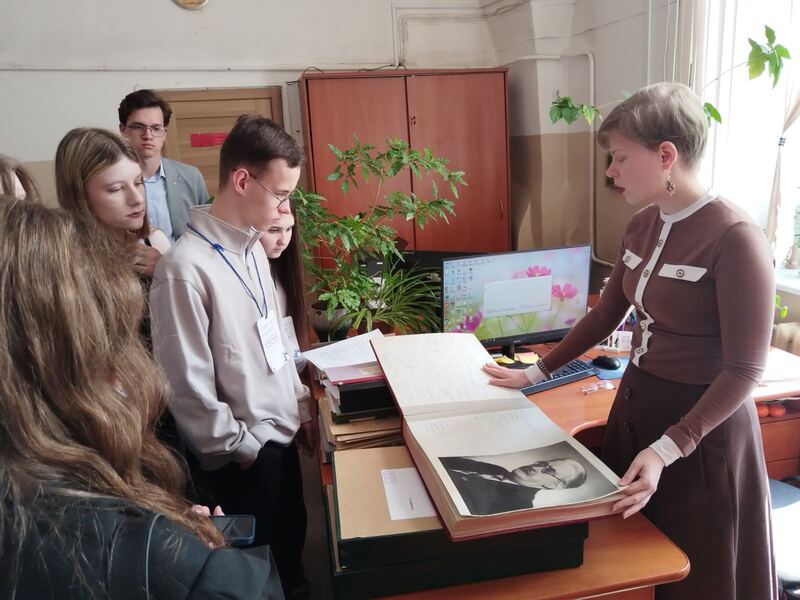 Заведующая отделом информации, публикации и использования документов Вера Валентиновна Бируля и ведущий научный сотрудник Дмитрий Сергеевич Самохвалов провели для гостей ознакомительную экскурсию. Будущие студенты посетили каждый отдел архива-музея и познакомились с его работой. Это позволило им увидеть полный жизненный цикл архивного документа.