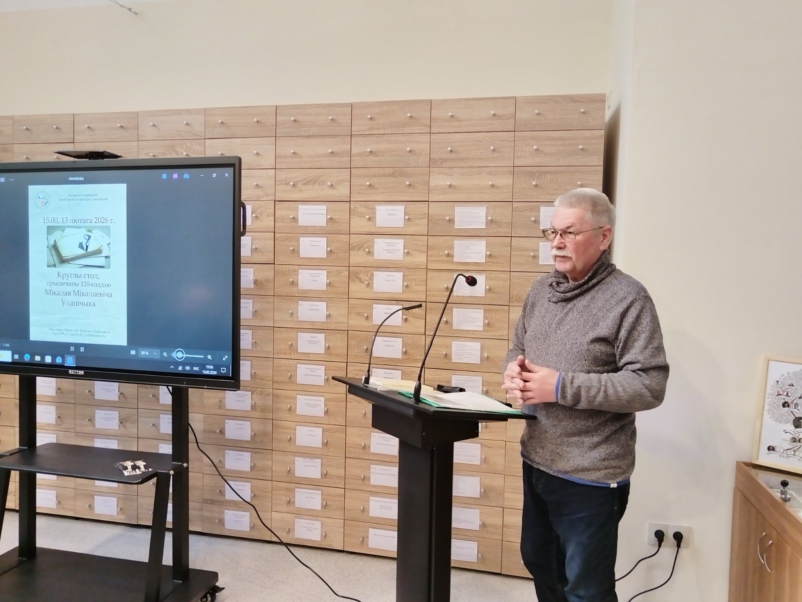 13 февраля 2026 года в Белорусском государственном архиве-музее литературы и искусства (далее – БГАМЛИ) прошёл круглый стол, посвященный 120-летию белорусского археографа Николая Николаевича Улащика. Н.Н.Улащик был ученым широкого профиля – историком, библиографом, культурологом, краеведом, однако работа с архивами, поиск белорусских архивных материалов всегда оставались его приоритетом. В круглом столе приняли участие ведущий научный сотрудник БГАМЛИ Д.С.Самохвалов, учёные-источниковеды М.Ф.Шумейко, В.Ф.Голубев, А.Л.Киштымов, библиограф Т.И.Жук, художник-график Н.Н.Купава.