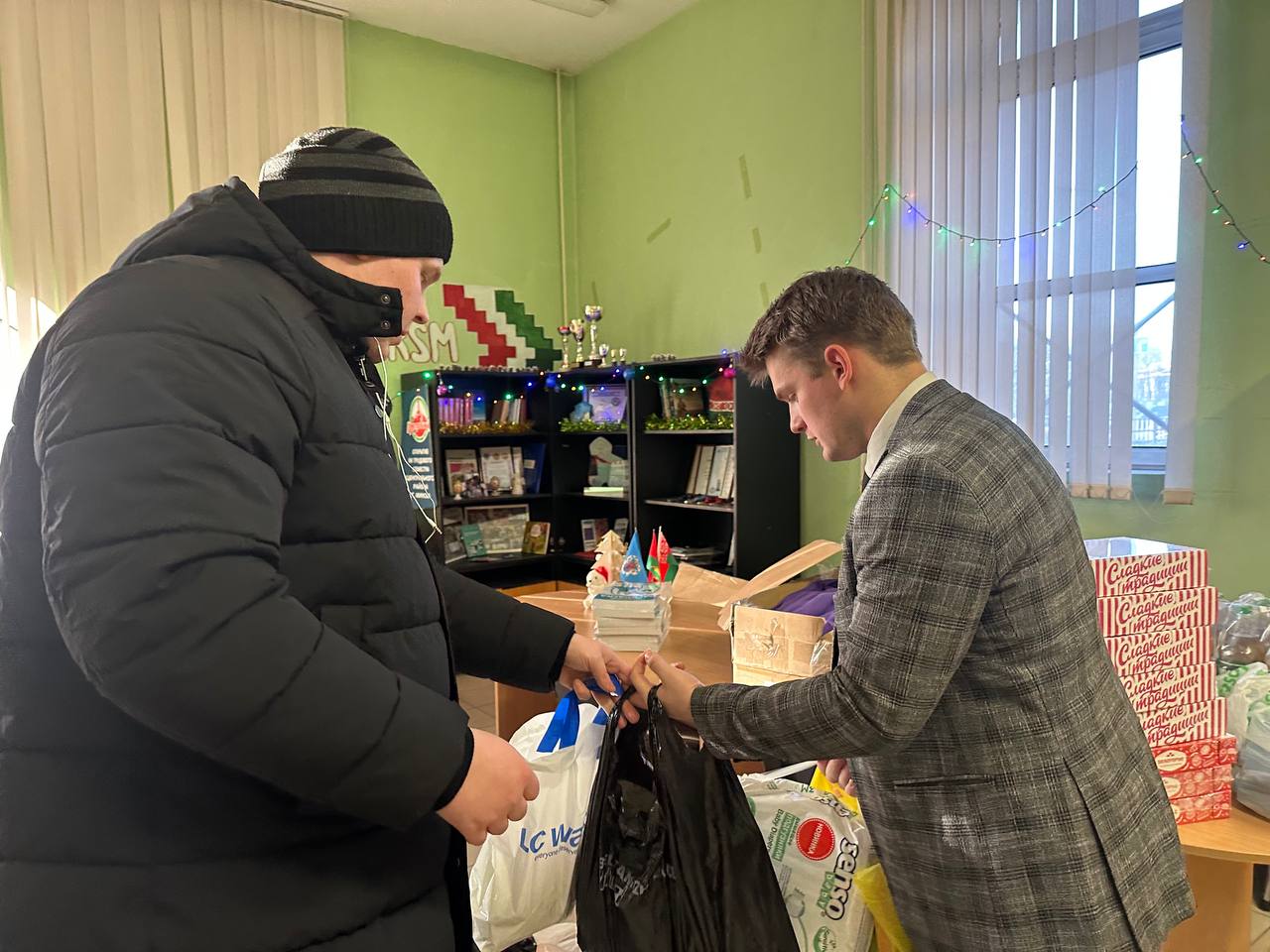 В рамках акции председатель ячейки БРСМ БГАМЛИ И.А.Лобович передал собранные подарки – игрушки, книги, наборы для творчества и настольные игры второму секретарю Центрального районного комитета БРСМ Е.Н.Лебедевскому. Участие архива-музея в рождественской благотворительной акции становится доброй ежегодной традицией, которая призвана подарить радость детям, нуждающимся в государственной защите, сделать их Новый год счастливым и радостным.