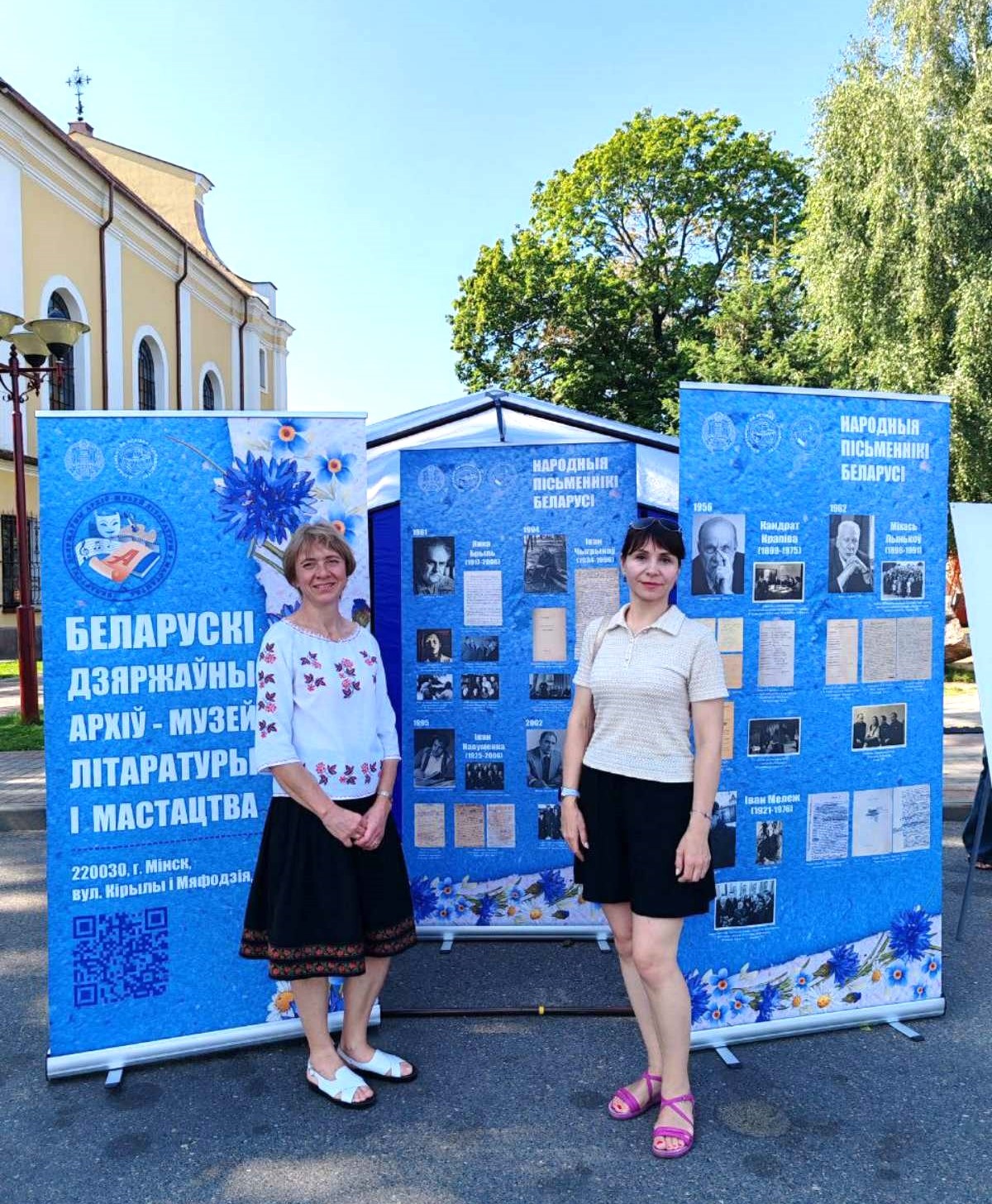 Заведующий отделом информации, публикации и использования документов БГАМЛИ В.В.Бируля и ведущий архивист Н.А.Мизон представили вниманию гостей и участников праздника баннерную выставку «Народные писатели Беларуси», подготовленную на основе фондов архива-музея.