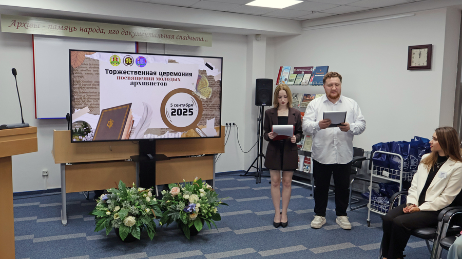 С приветственным словом к молодым специалистам выступили директор Департамента по архивам и делопроизводству Министерства юстиции Республики Беларусь О.Л.Воинов и руководители государственных архивных учреждений, руководитель Управления кадровой политики и идеологического обеспечения Министерства юстиции Республики Беларусь С.Н.Шендик. В своих выступлених они подчеркнули важность профессии архивиста, её востребованность в современном обществе.