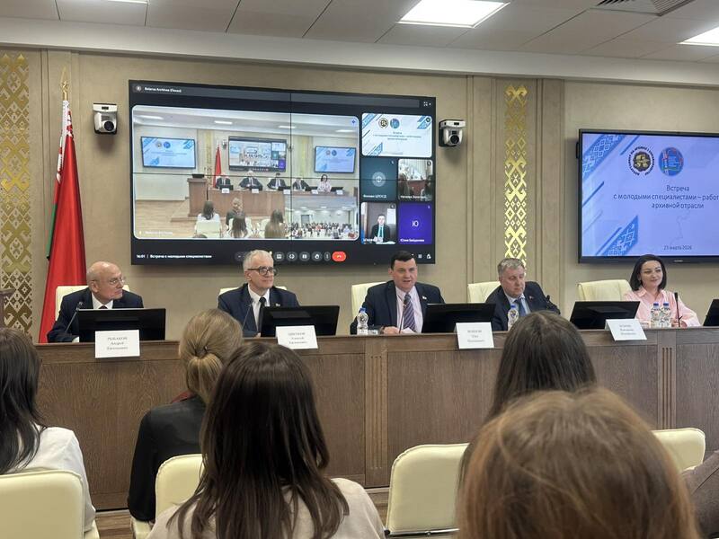 25 марта 2026 года работники Белорусского государственного архива-музея литературы и искусства (далее – БГАМЛИ) во главе с председателем первичной ячейки БРСМ БГАМЛИ И.А.Лобовичем и председателем первичной профсоюзной организации БГАМЛИ М.А.Филимонцевой, приняли участие во встрече с молодыми специалистами – работниками архивной отрасли и председателями профсоюзных комитетов республиканских архивных учреждений в Департаменте по архивам и делопроизводству Министерства юстиции Республики Беларусь при участии Минской городской организации Белорусского профессионального союза работников государственных и других учреждений.
