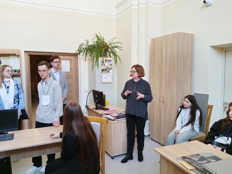 Загадчык аддзела інфармацыі, публікацыі і выкарыстання дакументаў Вера Валянцінаўна Біруля і вядучы навуковы супрацоўнік Дзмітрый Сяргеевіч Самахвалаў правялі для гасцей азнаямленчую экскурсію. Будучыя студэнты наведалі кожны аддзел архіва-музея і пазнаёміліся з яго працай. Гэта дазволіла ім убачыць поўны цыкл жыцця архіўнага дакумента.