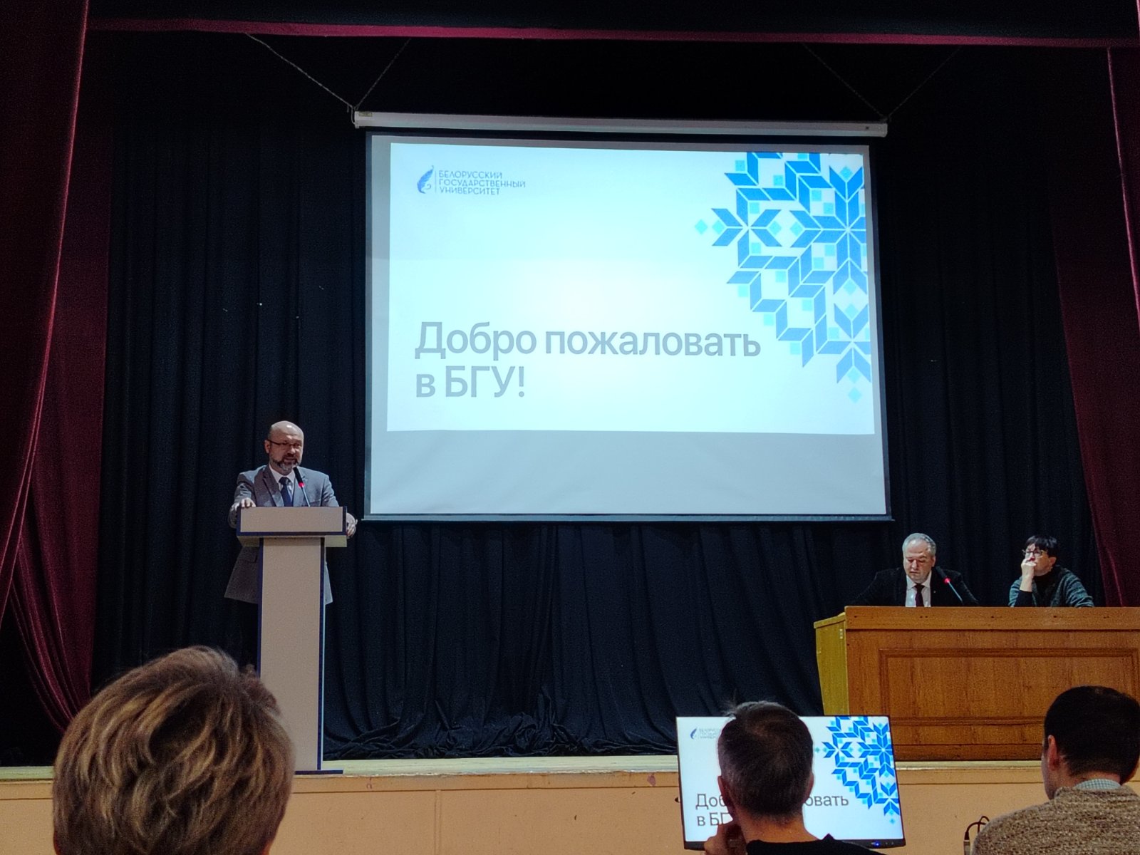 Мадэратарам сустрэчы з’яўляўся дэкан філалагічнага факультэта БДУ, кандыдат філалагічных навук, дацэнт Сяргей Аляксандравіч Важнік.