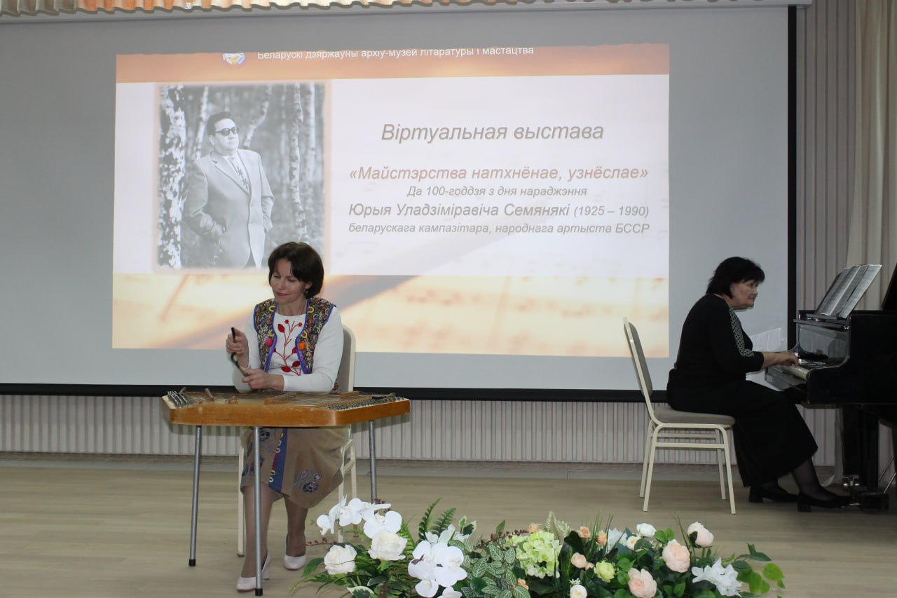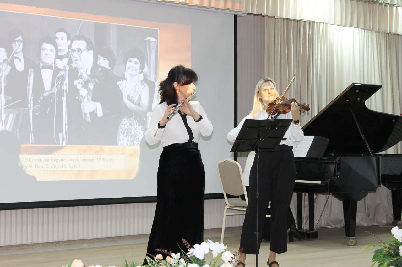 Вечар упрыгожылі разнастайныя музычныя нумары, якія выканалі выкладчыкі і навучэнцы сярэдняй школы № 4 і дзіцячай музычнай школы мастацтваў № 2 ім. М.І.Аладава. Прагучалі творы на музыку Ю.У.Семянякі – галоп з оперы «Калючая ружа», песня «Люблю цябе, Белая Русь».